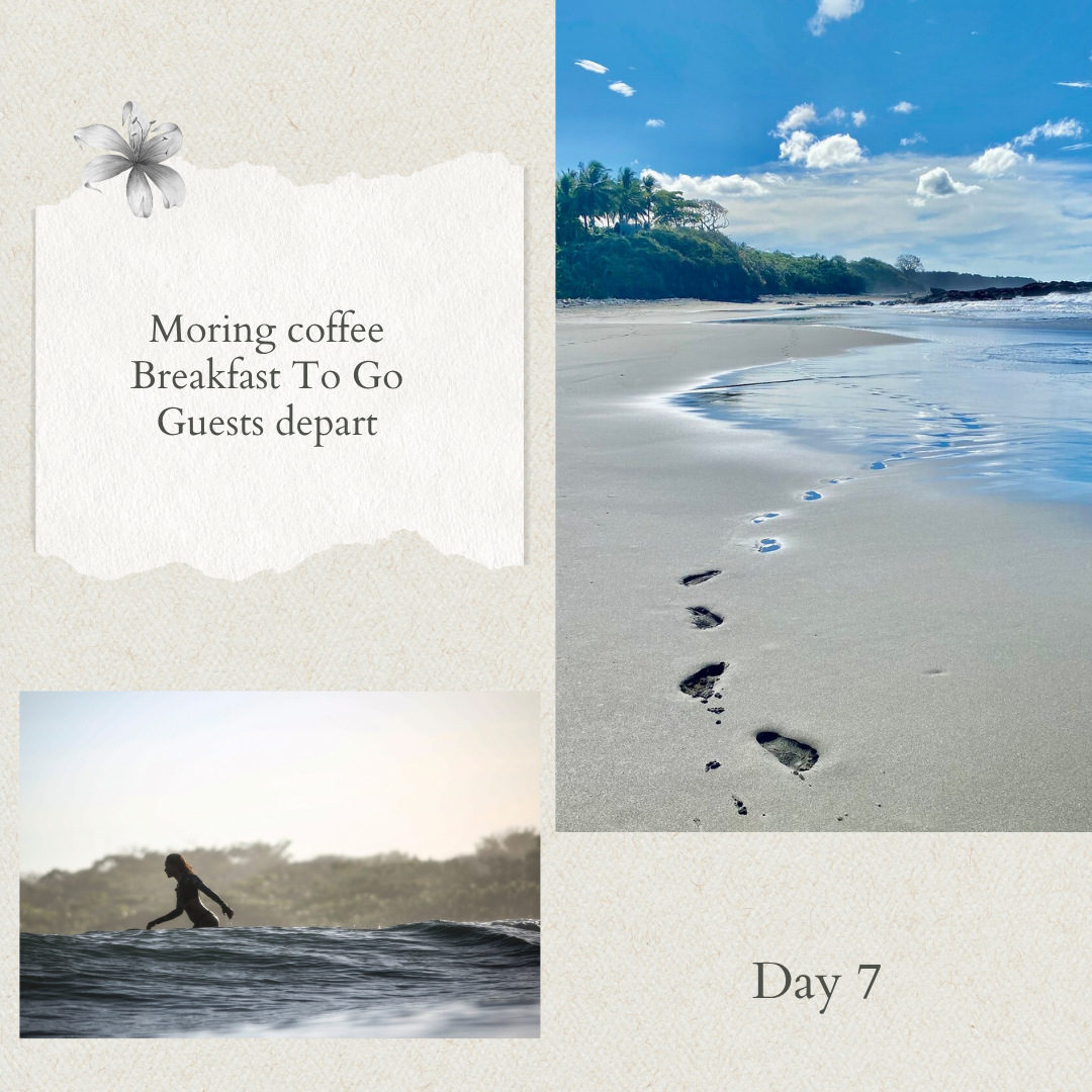 Our home blends traditional Tico architecture with modern comfort and village authenticity. It offers a private pool, air-conditioned bedrooms, high-speed internet, a fully equipped kitchen, and spacious indoor-outdoor living and dining areas designed for rest and connection. Our private chef, Carmensita, prepares fresh, nourishing meals daily, while Nosara’s most trusted healers and instructors curate a special wellness program for our group.